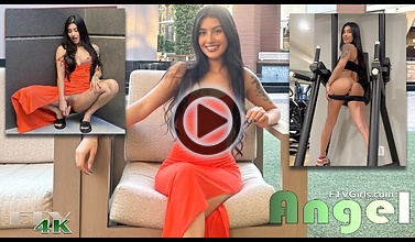 The gorgeous teen Angel is back and right off the bat she's showing her stuff in the living room in a slinky red dress, moving hypnotically as the music plays. She's got that petite slender stature that drives the guys wild and hops on the couch to show her cute booty and privates on her knees doggystyle, shaking her ass as she dances. Afterwards she grabs a big thick cucumber, slipping a condom on it and then slowly sliding it inside her hole for some kinky veggie penetration! Heading to the mall we see her doing a little shopping - and a little boobie flashing - before heading to the alley to get a little more naked for some fun including some outdoor masturbation with a carrot. The next scene is at the gym where she starts working out with her breasts exposed, then turns around to pull down her spandex shorts to show a little surprise...she has a jeweled buttplug inserted for some anal fun! After working out a bit she heads back to the house, still wearing her buttplug, and gets naked in bed to show off that ass some more. She spins the wheel of fun and ends up having to moan a name, so if anyone out there is named Derek make sure you check this out! It's time for more anal penetration so she takes a textured glass toy in her ass, fucking her backdoor for kinky play...she also tries fisting and is able to get a couple of fingers inside but her vagina turns out to be just too tight! It's a very fun and very sexy second shoot for this newcomer to the adult industry...enjoy Angel's return here on FTV!